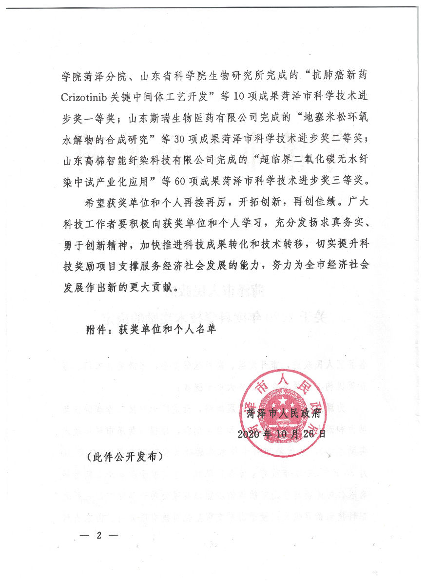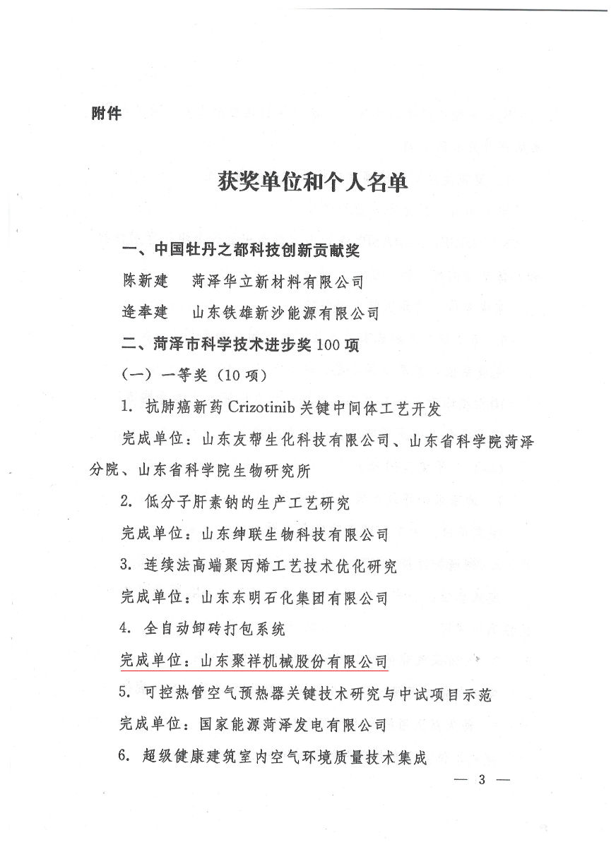 聚祥全自動卸磚打包機被評為菏澤市科學(xué)技術(shù)一等獎