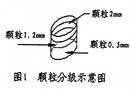 現(xiàn)場(chǎng)使用的分級(jí)篩的篩孔分別為2mm、1.2mm和0.5mm三種,篩分時(shí)把篩孔尺寸最大的篩合放最上層,篩孔尺寸最小的篩合放最下層,如圖1。其底合專為篩分時(shí)裝接細(xì)粉之用。