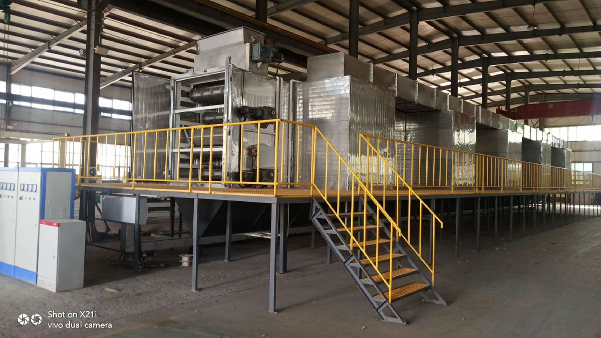 鏈網(wǎng)式污泥干化系統(tǒng)設(shè)備,由山東大學(xué)和山東省凱麟環(huán)保設(shè)備股份有限公司共同研發(fā)。該設(shè)備設(shè)計(jì)處理污泥60-100噸/天,適用于含水率60%的污泥干化至含水率30%的污泥顆粒,利用窯爐余熱對(duì)污泥進(jìn)行系統(tǒng)干化脫水處理,在干化過程中不產(chǎn)生二次污染,同時(shí)干化后的污泥顆粒作為原料進(jìn)行制磚,污泥含有一定熱量的有機(jī)物質(zhì),補(bǔ)充了高溫焙燒所需的熱量,降低了能源的消耗,真正達(dá)到污泥無害化、減量化和資源化利用的目的,是窯爐協(xié)同城市污泥資源化利用重要關(guān)鍵設(shè)備。