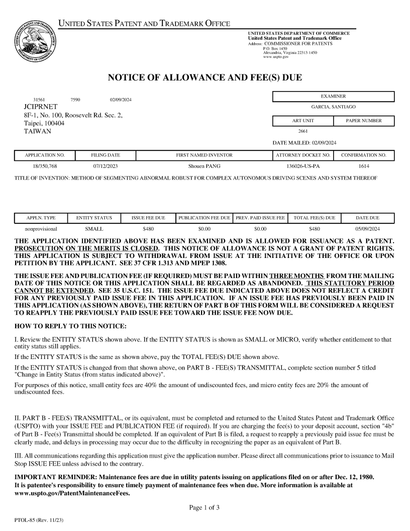 恭賀山東聚祥榮獲美國專利授權(quán)<一種面向復(fù)雜自動(dòng)駕駛場景的異常魯棒分割方法與系統(tǒng)>