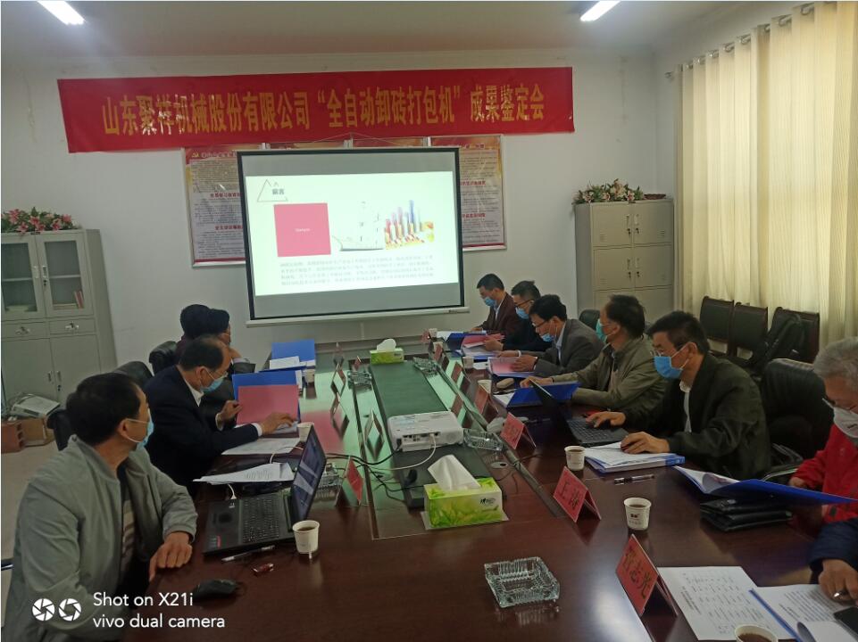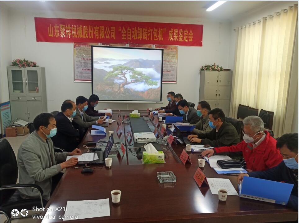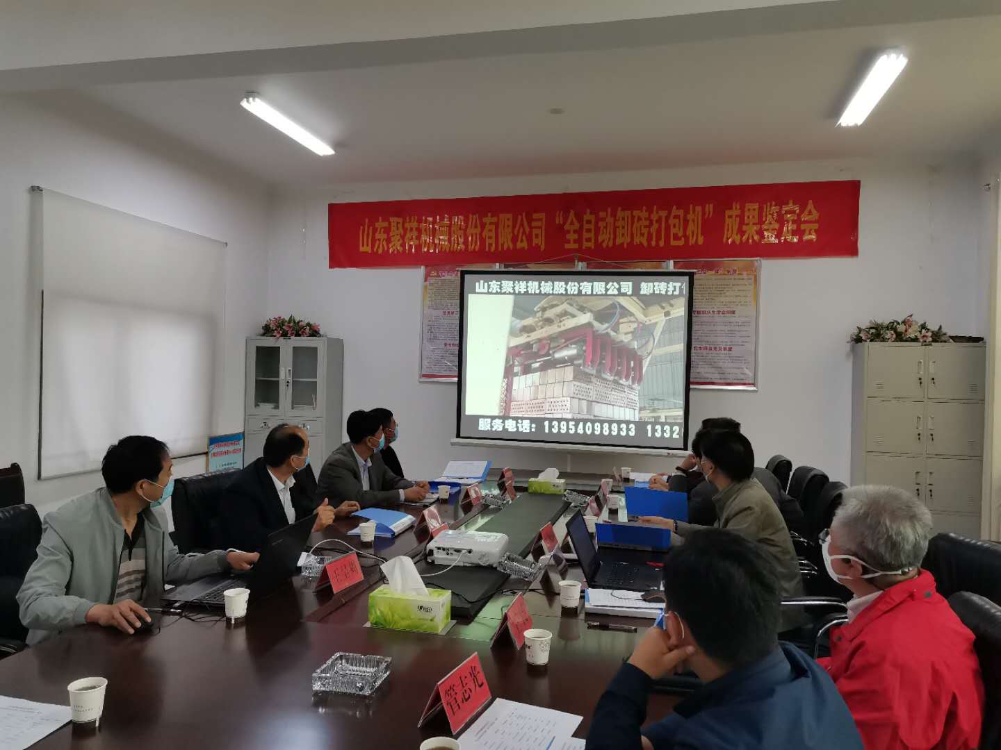 2020年4月28日,菏澤市科技局組織國內(nèi)知名專家對山東聚祥機械股份有限公司全自動卸磚打包系統(tǒng)進行了科技成果鑒定。與會專家,通過聽取項目匯報、查閱相關(guān)資料、觀看全自動卸磚打包系統(tǒng)現(xiàn)場工作視頻,大家一致認為:山東聚祥機械股份有限公司全自動卸磚打包系統(tǒng)整體技術(shù)達到國內(nèi)領(lǐng)先水平,建議進一步提高產(chǎn)品的智能化水平,加大產(chǎn)品的推廣力度。
