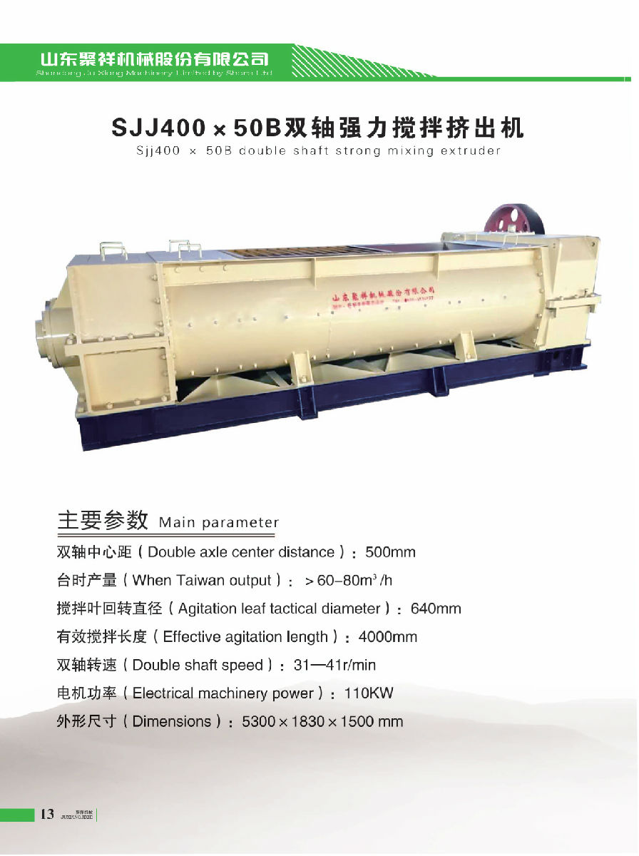 SJJ400×50雙軸強(qiáng)力攪拌擠出機(jī)